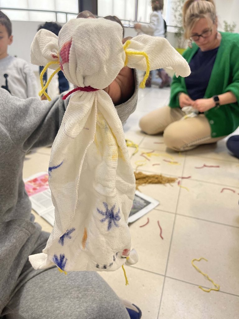 Les comédiens marionnettistes ont aussi animé des ateliers de fabrication et manipulation de marionnettes, au théâtre et hors les murs dans les écoles.