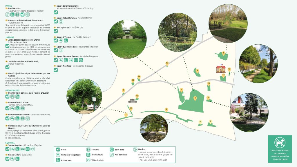 Retrouvez la carte interactive des parcs ici : Aires de jeux, parcs et jardins – NOGENT-SUR-MARNE – Plan interactif