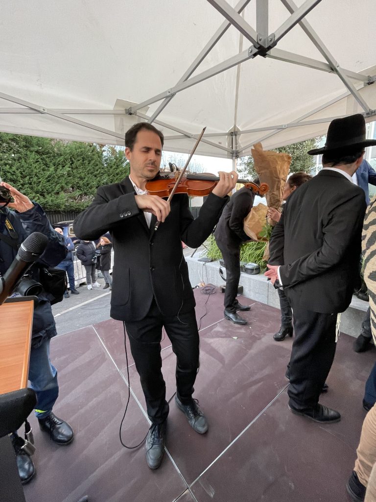 Le vibrant hommage a continué au son du violon joué avec brio et émotion par Charles Rappoport avec le dévoilement de la plaque gravée dans le marbre en plein cœur du jardin et le dépôt de roses blanches par le public au pied des magnifiques portraits des disparues réalisés par le portraitiste Jean-Loup Othenin-Girard.